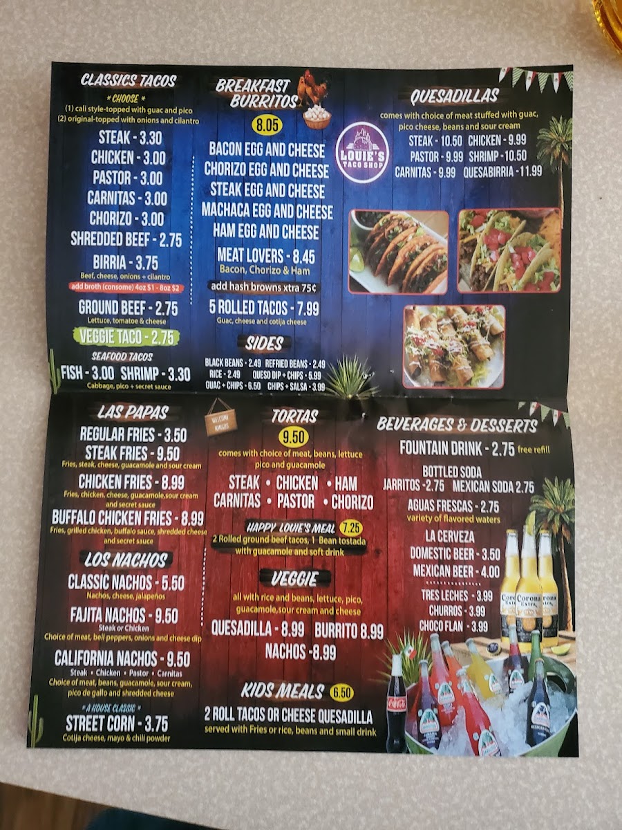 Welcome to Louie's Taco Shop & Bar, a vibrant dining spot located in Antioch, TN. Here, the heart of Mexican cuisine comes alive with a menu that promises flavor and comfort in every bite. Renowned for their exceptional el pastor tacos and notable Birria Tacos, each dish is crafted with a mix of tradition and creativity. Be sure to indulge in their delicious Smurf shots and refreshing margaritas, the perfect companions to your meal.